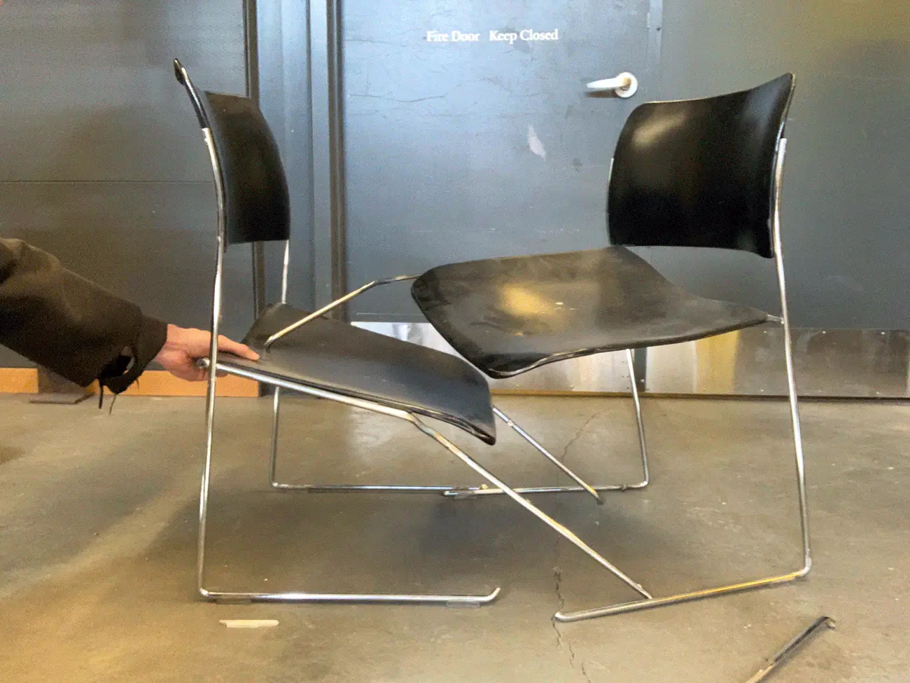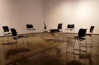 Fighting Chairs, 2023, structure , in New Haven, CT, out of 7/16’ solid steel (chrome-plated) rods, PA6 polyamide (plastic)